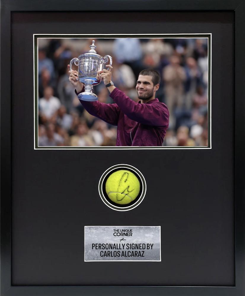 FRAMED CARLOS ALCARAZ HAND SIGNED TENNIS BALL